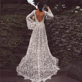 Chique e brilhe com este vestido de noiva boêmio sexy de renda floral que apresenta um decote em V profundo. Desenhado em linda renda, este vestido longo e elegante apresenta um decote fora dos ombros com um corpete justo e costas ilusórias. A saia...- $229.00USD